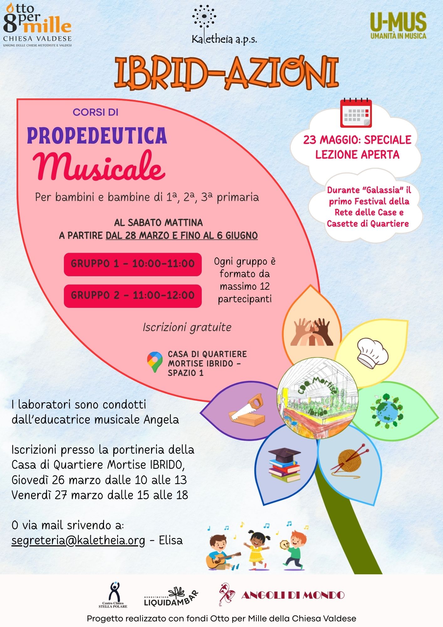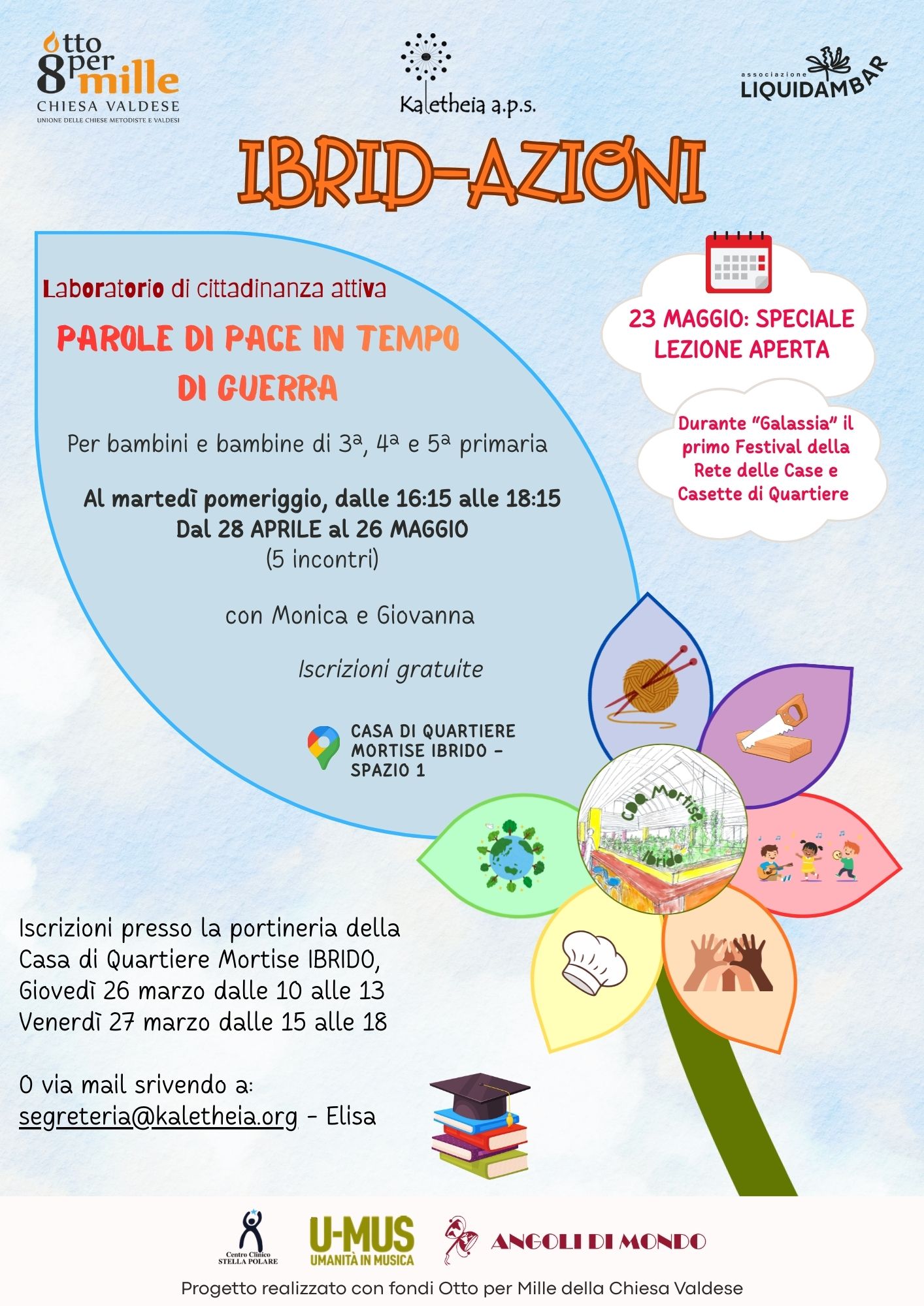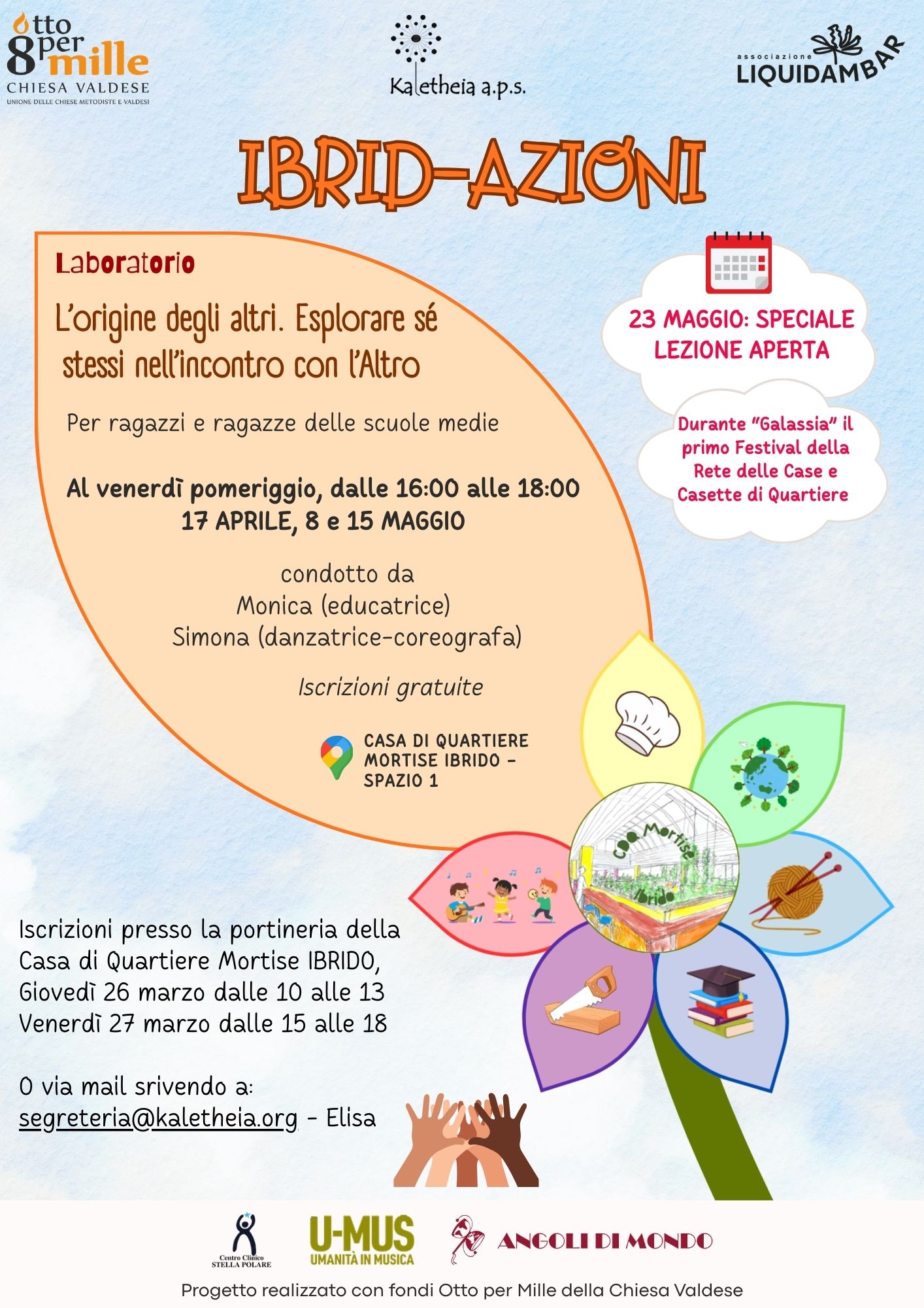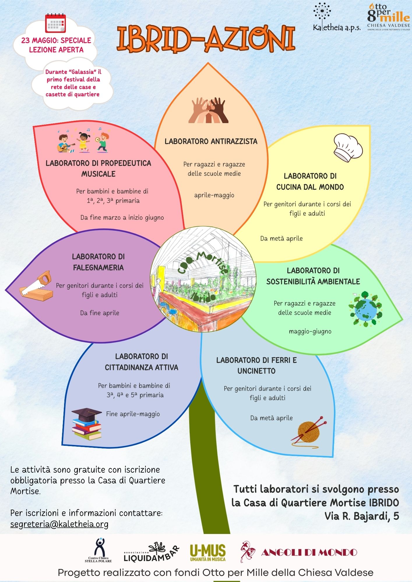 IBRID-AZIONI è un progetto di Kaletheia a.p.s., realizzato con fondi Otto per Mille della Chiesa Valdese, in collaborazione con Associazione Liquidambar, U-MUS Umanità in Musica, Angoli di Mondo e Centro Chiico Stella Polare.