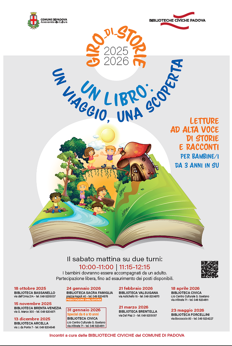L'elenco completo degli appuntamenti e le sedi è disponibile a questo link: https://www.bibliotechecivichepadova.it/it/eventi-e-mostre/giro-storie-libro-viaggio-scoperta?pk_campaign=Newsletter