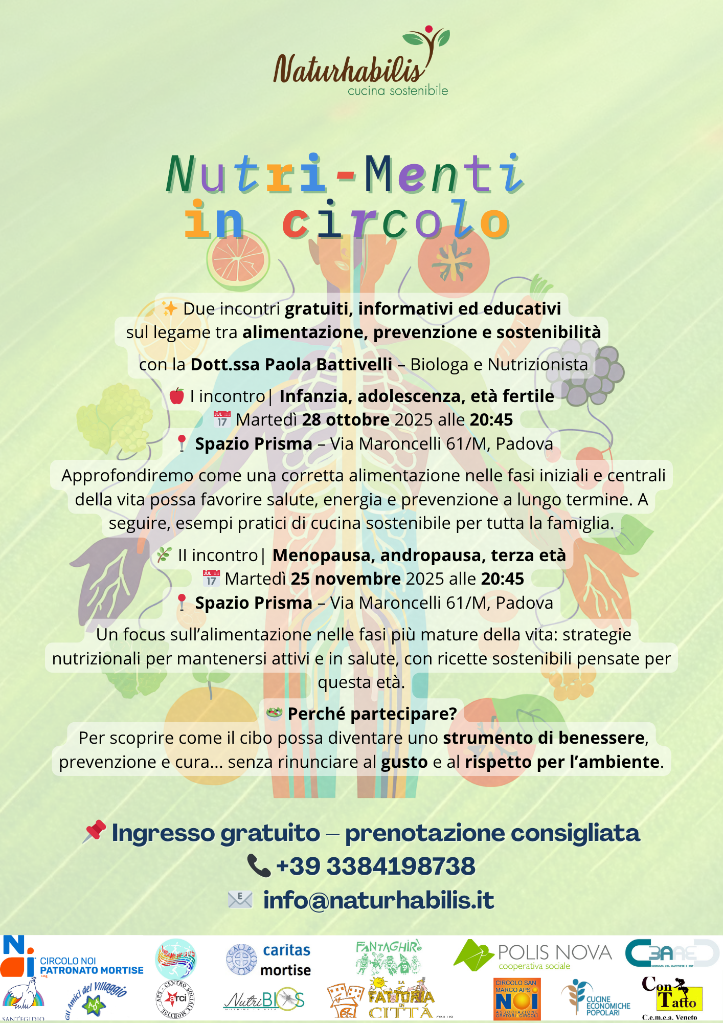 - Nutrizione preventiva per infanzia, adolescenza ed età fertile – 28 ottobre 2025, ore 20:45 Spazio Prisma, Via Maroncelli 61/M